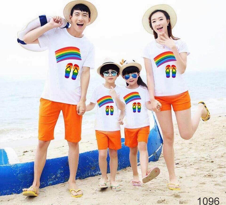 Đồng phục nhóm - DPN010 - mẫu cầu vòng cùng với đôi dép lê, mang đập tính chất mùa hè.